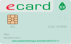 halten Sie Ihre E-Card bereit!" steht in großen Lettern an der Glaswand