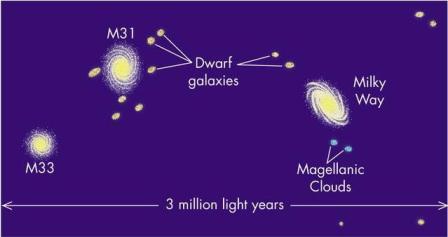 Our Local Group con- tains three spiral galaxies: the Milky Way,